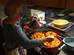 In der großzügigen Küche von Weltweitwandern haben wir genug Platz, um mit Abstand, viel Freude und Genuss das Menü gemeinsam zu kochen und dann zu verkosten.