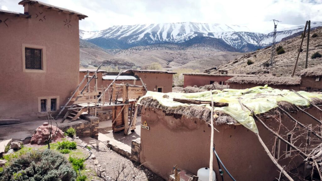 (23.4.2026) Der Winter im Hohen Atlas war dieses Jahr ungewöhnlich hart: Im Aït Bouguemez, wo der campus vivant’e liegt, fiel so viel Schnee wie seit Jahren nicht mehr. Für viele Familien im Tal war das eine große Belastung. Dächer wurden beschädigt, Wege unpassierbar, Strukturen zerstört. Das Lager für Gartengeräte, zentraler Ort für die Permakulturarbeit mit den Schüler*innen, wurde stark beschädigt, Regenrinnen und Schläuche müssen erneuert werden.